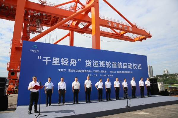 7月25日,重庆物流集团“珞璜港—新田港”“果园港—云南水富港”等“千里轻舟”试点航线顺利启运,“千里轻舟”智慧航运平台同步上线。市政府副秘书长全伟,市交通运输委党委书记、主任何庆,集团党委书记、董事长曾勇,集团党委委员、重庆港党委书记、董事长屈宏出席首航启动仪式。