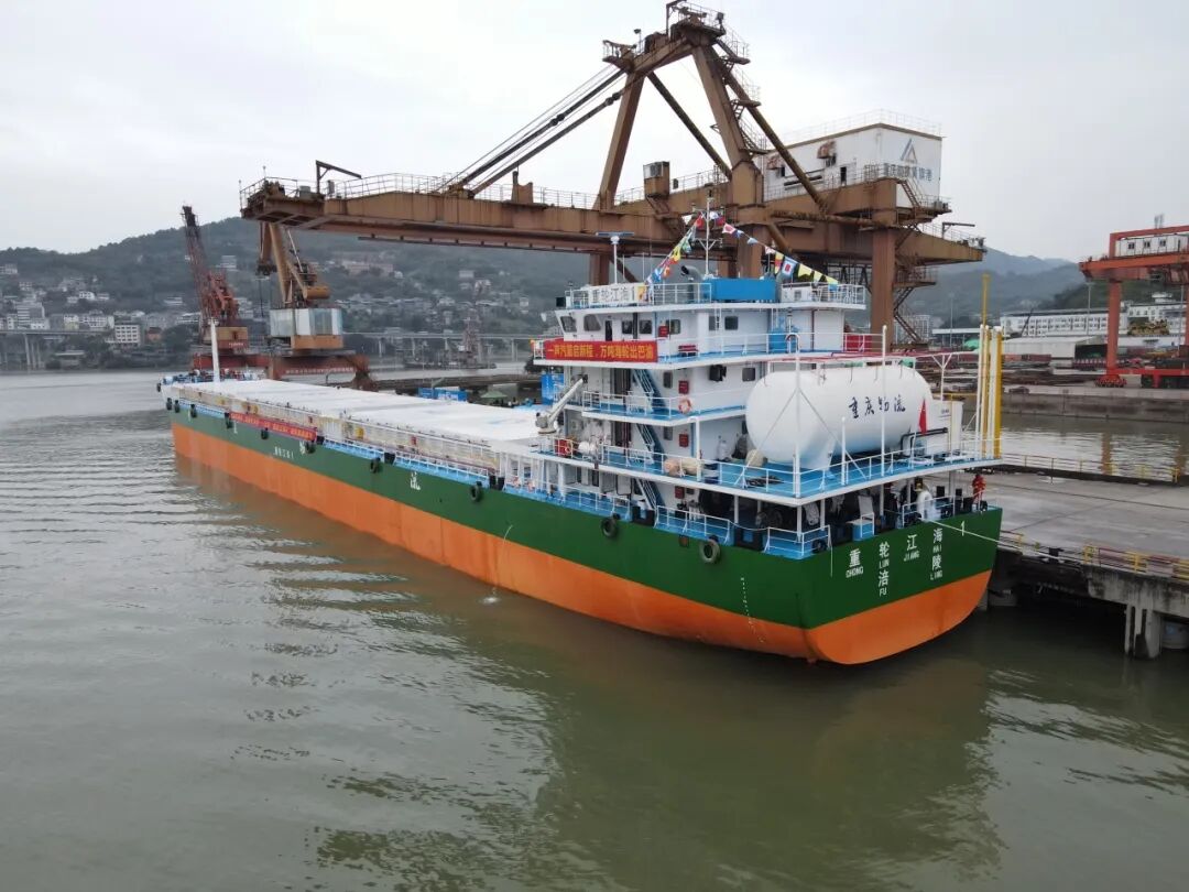 11月11日上午,由重轮公司投资、中江船业公司自主设计建造的重庆首艘江海直达船“重轮江海1”,装载着涪陵华峰化工的5000吨己二酸,在涪陵黄旗港鸣笛启航,发往浙江舟山,开启了重庆航运史上具有里程碑意义的新篇章。